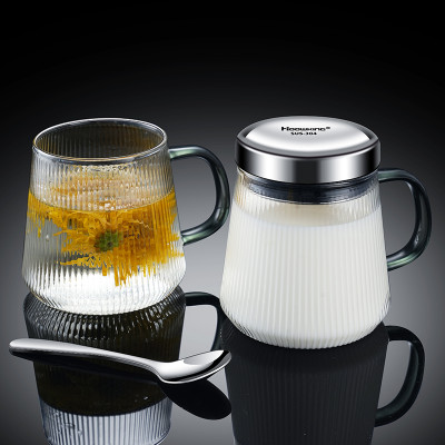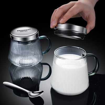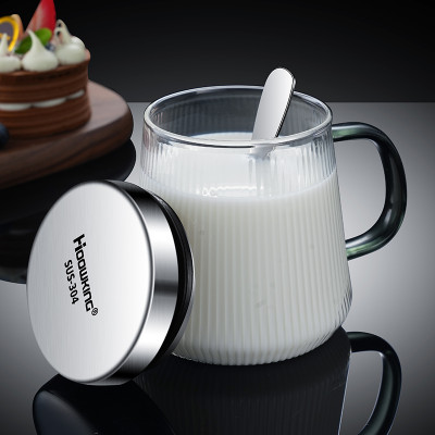 كوب زجاجي سميك بغطاء ، كوب حليب ، كوب إفطار دقيق الشوفان ، كوب قهوة ساخن بالميكروويف ، كوب شاي منزلي بغطاء ، كوب ماء